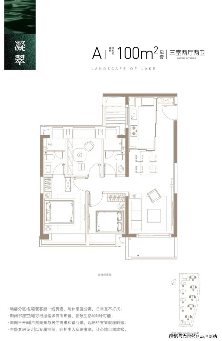 建面约100㎡3房2厅2卫,功能性和尺度感完美结合的3房户型。