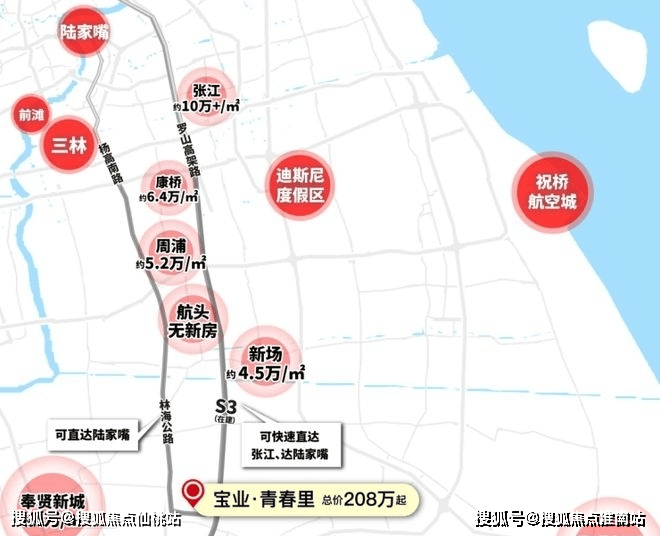 从张江沿着S3(在建)一路南下,张江的房价如今已到了“高不可攀”的程度。