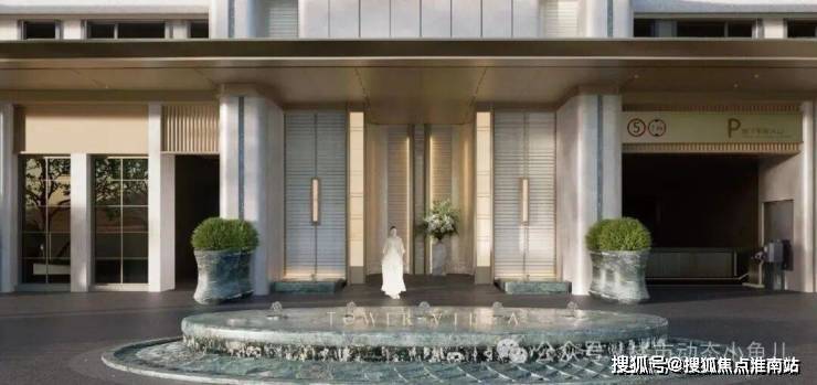 项目入口处对标的是奢牌酒店,以飞鸟展翅的灵动为设计灵感,米白色调贯穿其间,天然石材与香槟金金属板精心拼接的立面,弧形元素对称布局,勾勒出建筑的纯净质感,为归家之路奠定优雅基调.