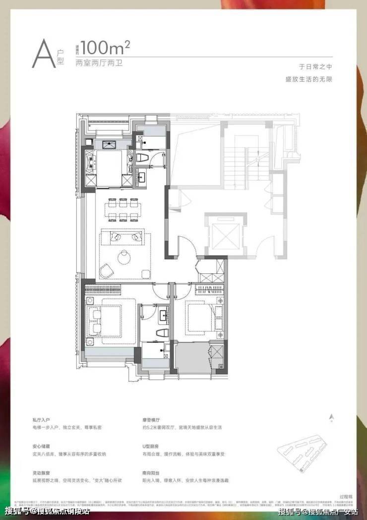 所有户型都是私厅入户设计,每户均享有约5㎡的独立电梯厅,这在板块内实数少见。