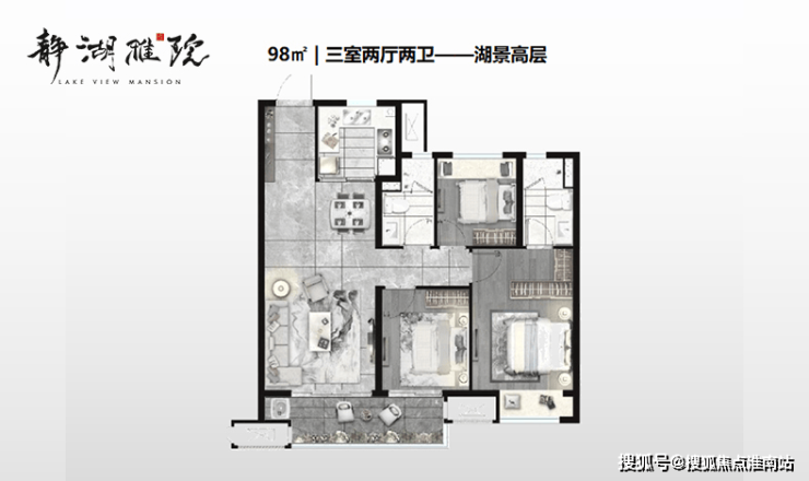125㎡丨270°一线湖景,三阳台设计,湖光与阳光同享。