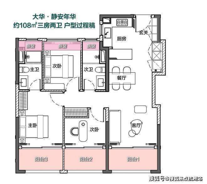 高层:108㎡(3 房 2 厅 2 卫)、123㎡(3+1 房 2 厅 2 卫)