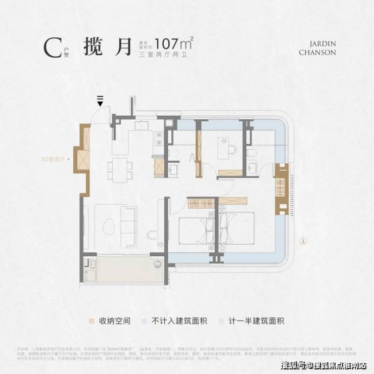第二处卫浴s墙,大概一掌深,但是立面面积足足多了2平方米!超薄柜收纳有多强?一打开所有的东西琳琅满目,整整齐齐。而且另一侧的凹位也能得到很好的利用。第三处山墙s墙的技术含量更高,直接让户型拥有两个大转角飘窗(主卧+主卫均双270°弧形转角飘窗)。凹处填放一个衣柜,视觉效果舒适,业主第一眼无知无觉,殊不知背后大有玄妙。