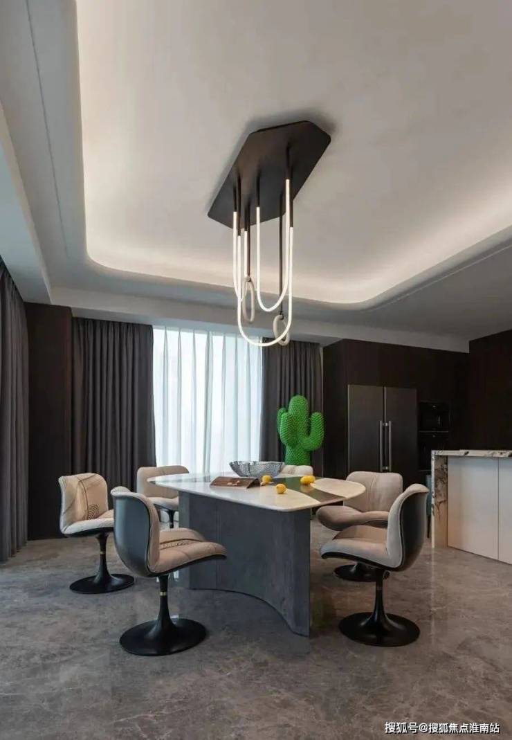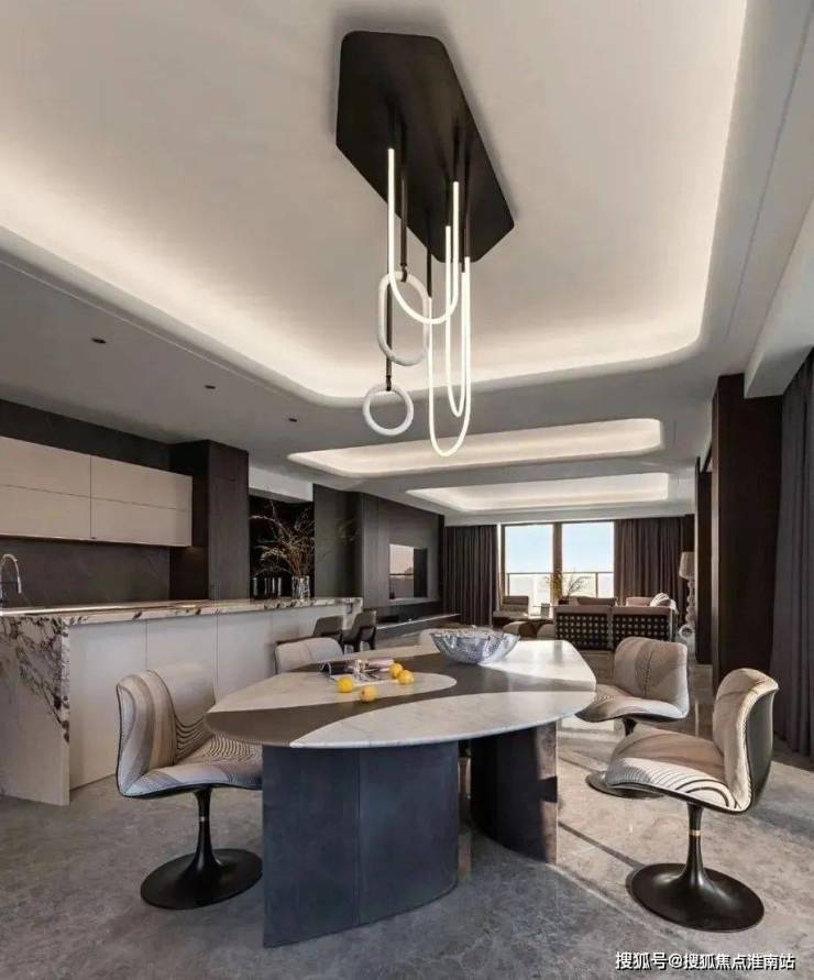 The just-right curve design flows naturally like flowing clouds and water, not only outlining the elegant contours of the dining area but also adding a touch of softness and gentleness.