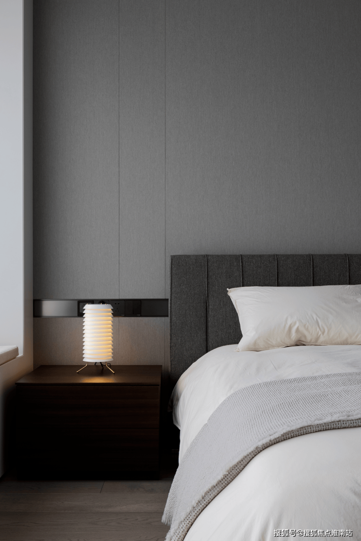 床头柜上的台灯与装饰品,则在不失简约风格的同时,增加了空间的艺术感与层次感。
