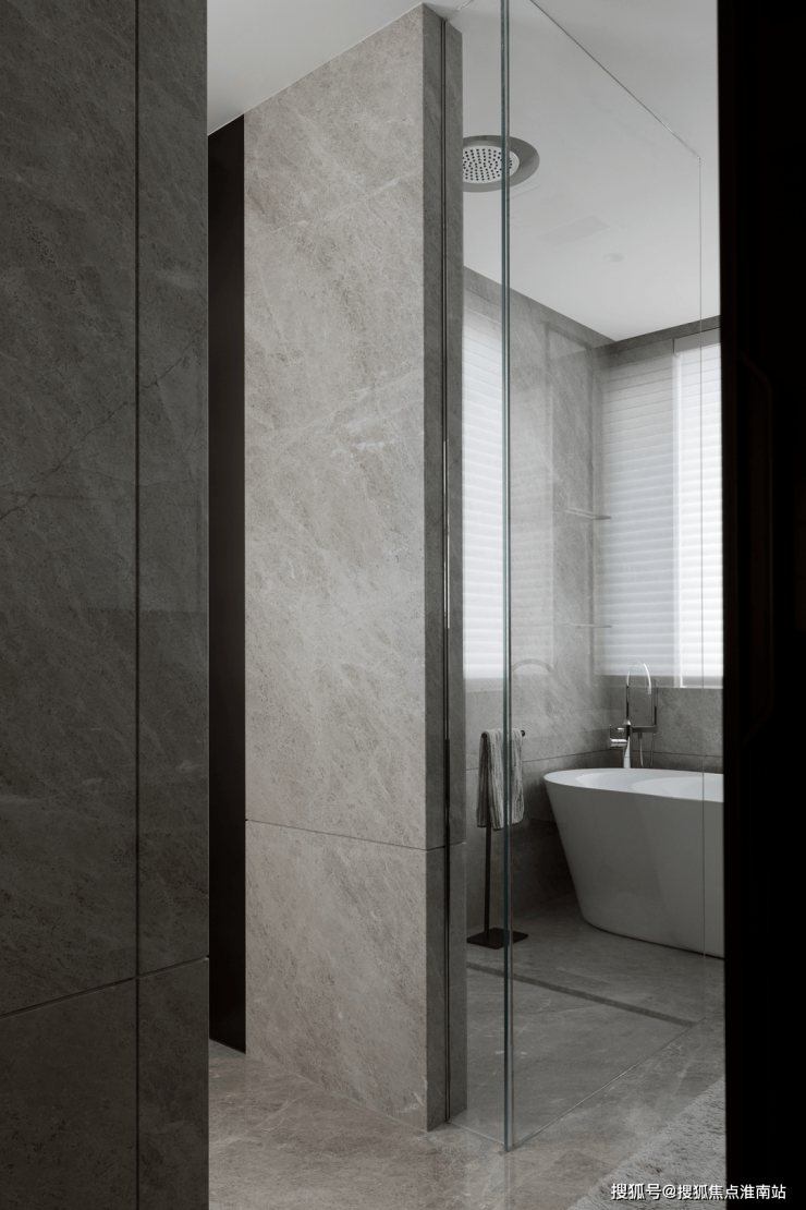 空间内以白色和灰色为基调,营造出一种清新而高雅的氛围。大理石地板的铺设不仅提升了整体质感,还赋予了空间一种冷峻而又不失温馨的感觉。
