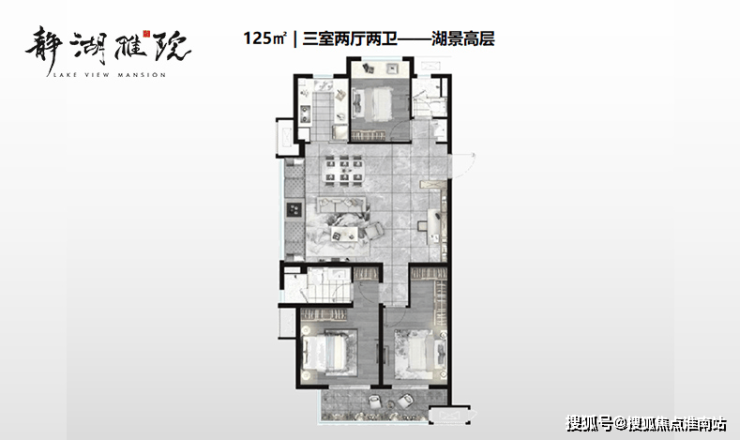 125㎡丨270°一线湖景,三阳台设计,湖光与阳光同享。