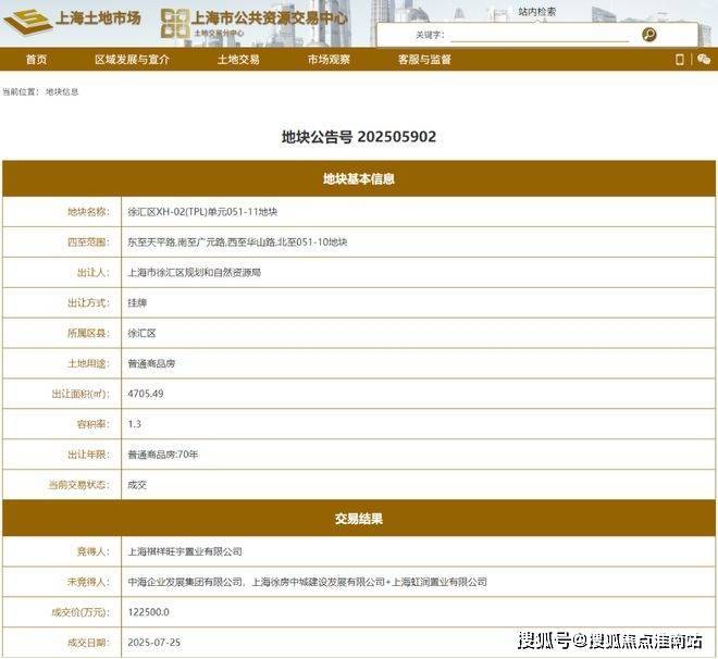 日前,祺祥旺宇的企业以总价122500万拿下徐汇区XH-02(TPL)单元051-11地块,容积率仅1.3,限高15米,楼板价超20万/㎡!