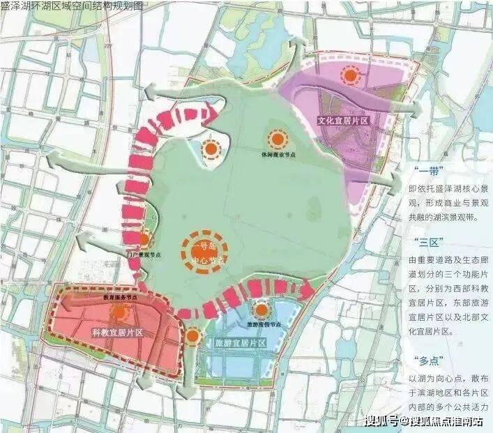 根据盛泽湖片区发布的规划,盛泽湖环湖区域将建设成集休闲娱乐、旅游度假、居住商业等功能于一体的5A景区和现代都市宜居住区。包括西部科教宜居片区、东部旅游宜居片区、北部文化宜居片区等三大片区。