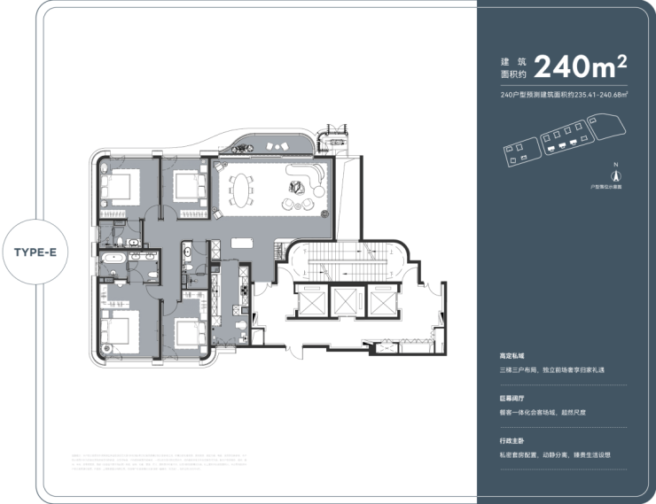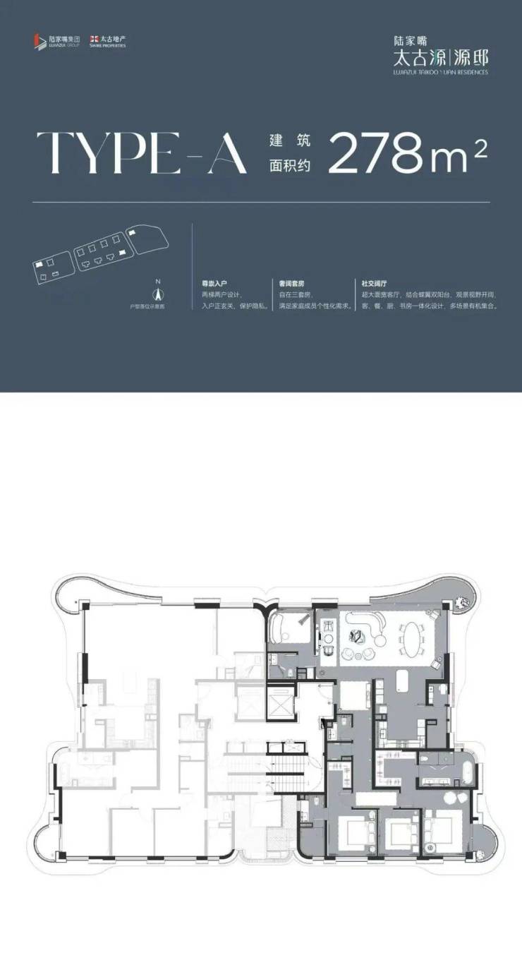 240–278㎡四房两厅三至四卫:南北双阳台,横厅布局,江景视野最大化