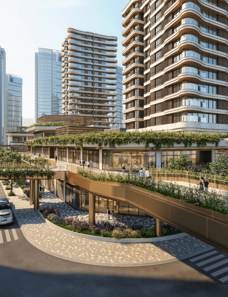 项目为约54万方超级滨江综合体的一部分,涵盖甲级写字楼、高端商业街区、酒店及服务式公寓
