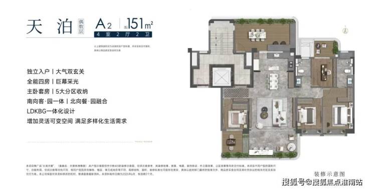 产品方面,四代洋房A1户型建面约156㎡,4房2厅2卫,四开间朝南,LDKB一体化设计,全能四房拥有通透采光,南露台+北阳台可打造多元化活动空间。