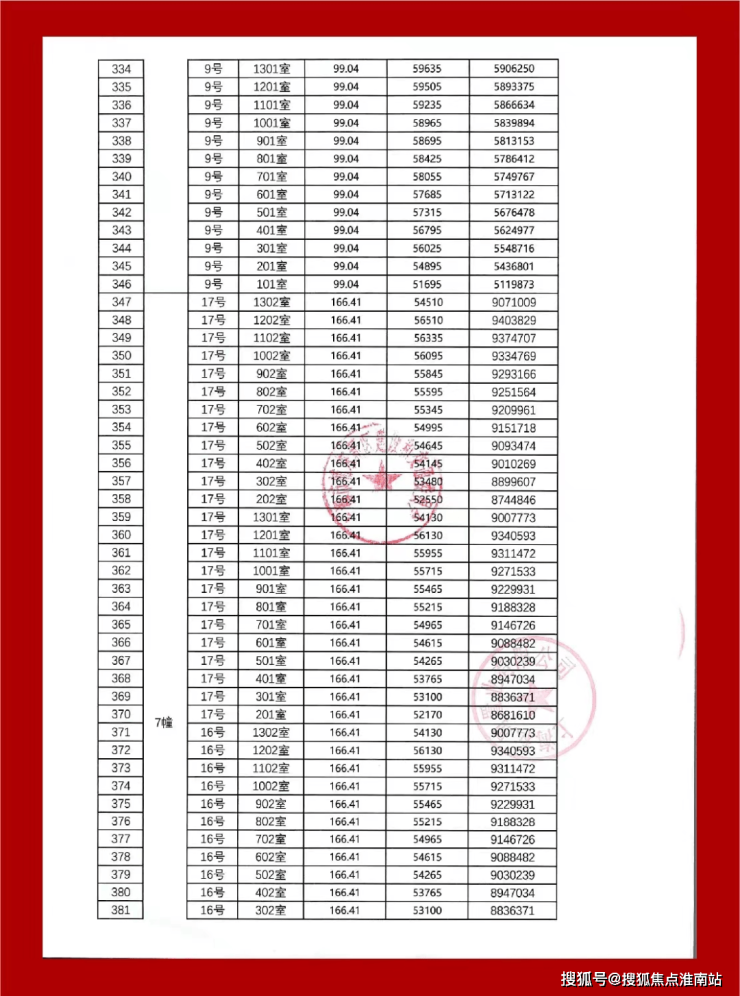 最新一房一价表: