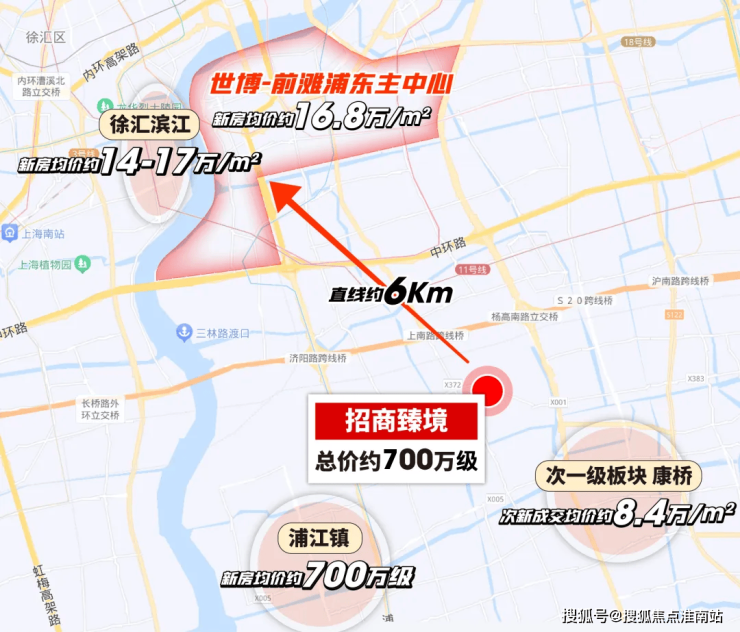 招商臻境位于浦东金色中环南部片区,直线距离陆家嘴、徐汇滨江等产业高地直线距离均在12公里以内,直线距离张江城市副中心仅约10公里,直线距离浦东新贵前滩中央活动区仅约5公里!可谓给到浦东700万级购房者千载难逢的置业机遇!