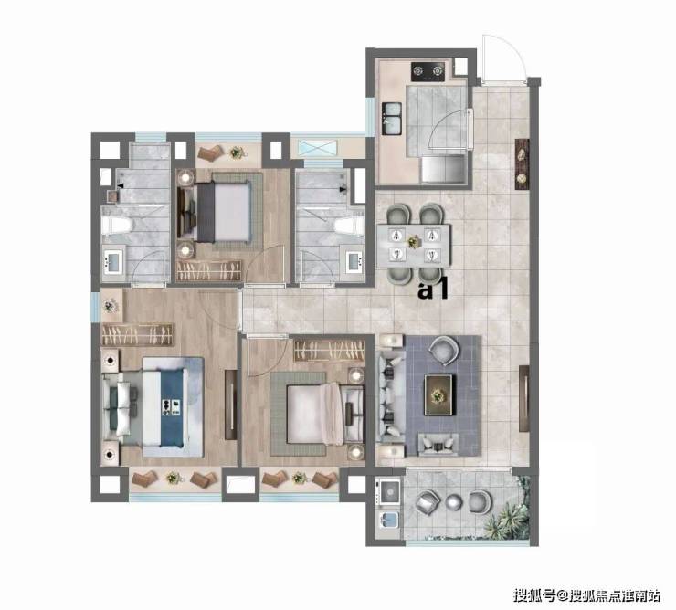 A1户型:建筑面积约98㎡3房2厅2卫