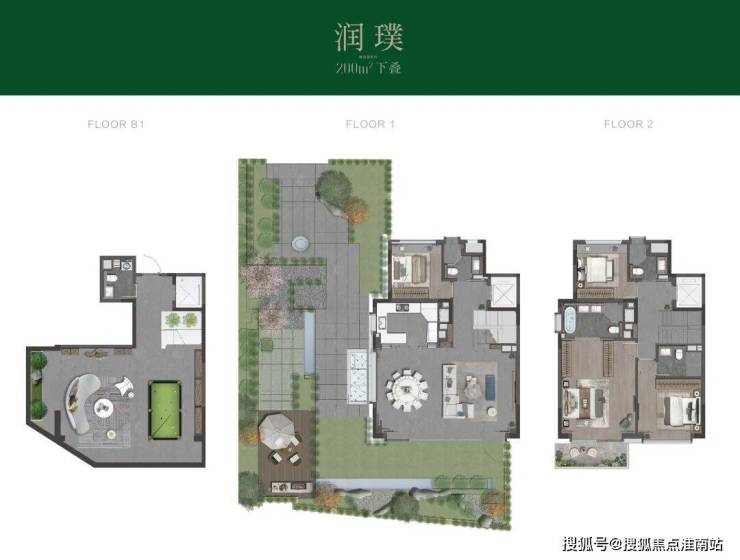 上叠从北绿地花园入户,经私家电梯直接进入3层或4层室内空间,或进入B1夹层地下室。