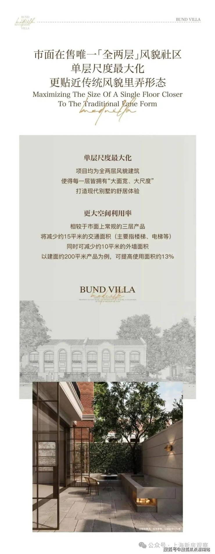 赓续百年源启复兴。中建壹品·外滩源著·复兴里,将以三重复兴为笔,绘就滨江人居的新篇章。融合历史文脉与现代人居需求。规划100套建面约150-350㎡的滨江风貌别墅,敬请期待