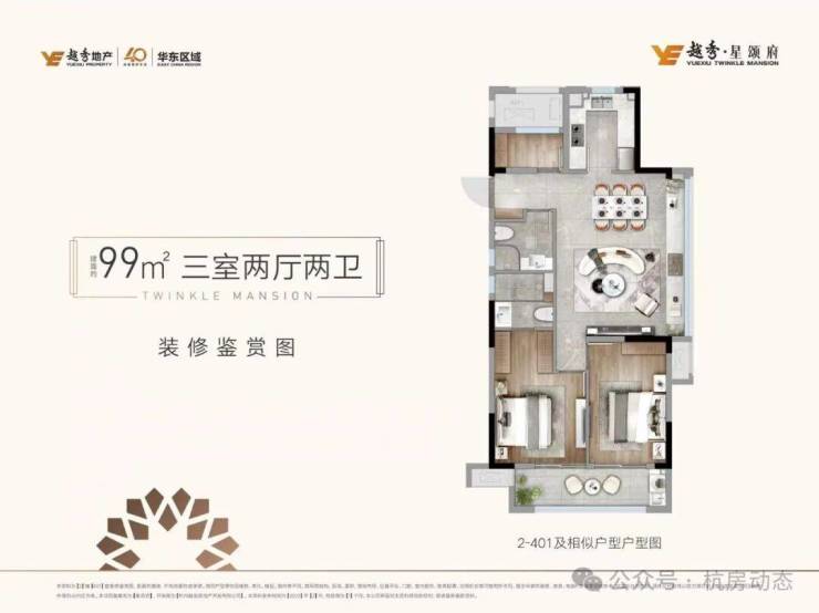户型设计上,则拥有“约3米层高+户户双联阳台”的奢适空间。如果不曾说明,谁也不会料到这样的舒适尺度竟出自建面约89-99㎡三房两厅两卫的小户型,而且建面约99㎡还是阅遍杭州都罕见的全边套布局,拥有270°采光和观景视野,堪称年度户型彩蛋。