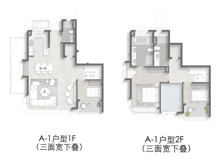 在所有叠墅户型中,下叠往往是更具“墅感”的,萃屿原墅下叠产品双首层创意空间的设计,实际使用面积超大将墅居生活体验拉满!
