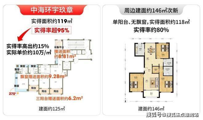 中海环宇玖章售楼处电话:400-881-8994(售楼处最新电话)普陀真如中海环宇玖章官方电话:400-8818-994✔(官方售楼处预约看房热线)环宇玖章125户型实得率超95%,而宝华项目实得率仅约80%。按同等实用面积折算,环宇玖章实际单价就更划算,仅约10万/㎡。