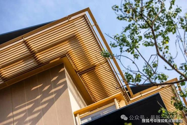金:建筑立面中,使用了金色的金属格栅、型材,搭配出和谐的色彩感,施工工艺复杂,但可以使整个建筑在阳光下,散发出温润的光芒;