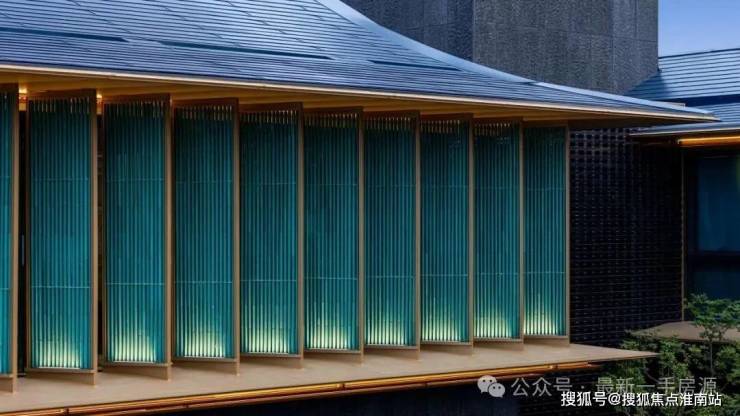 瓷:而会所立面的屏扇处,则使用了青绿色陶瓷釉面屏扇,整个制作过程,非常耗时废材,经过10多轮打样,报废了两大炉瓷管,才最终得到这46樘屏扇;