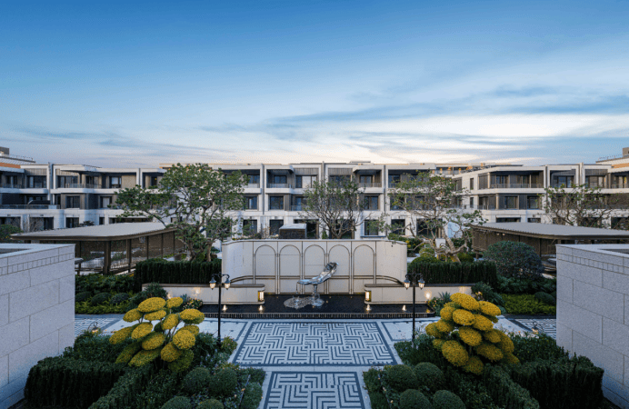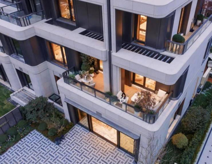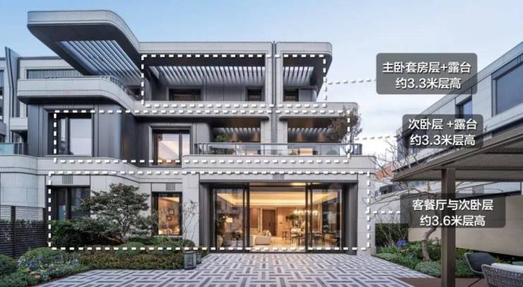 交付标准:叠墅精装交付,标配大金中央空调、新风系统;厨房博世五件套,卫浴杜拉维特+汉斯格雅;合院毛坯交付,预留电梯井,地面三层+地下两层,实际使用面积超500㎡