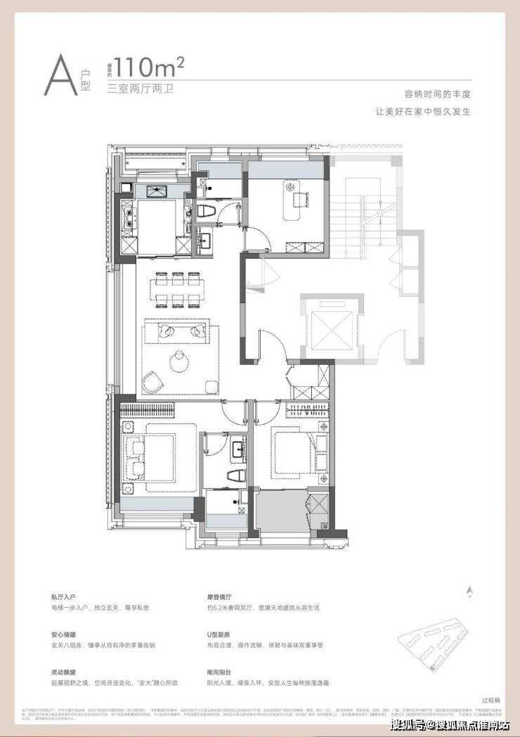 建面约115㎡户型舒居改善标杆.强化空间舒适度与尺度感,高赠送设计更提升空间利用率.