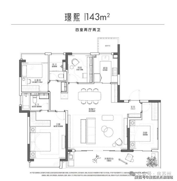 户型面积:建筑面积约134㎡三房、134㎡四房、140㎡四房、143㎡四房、