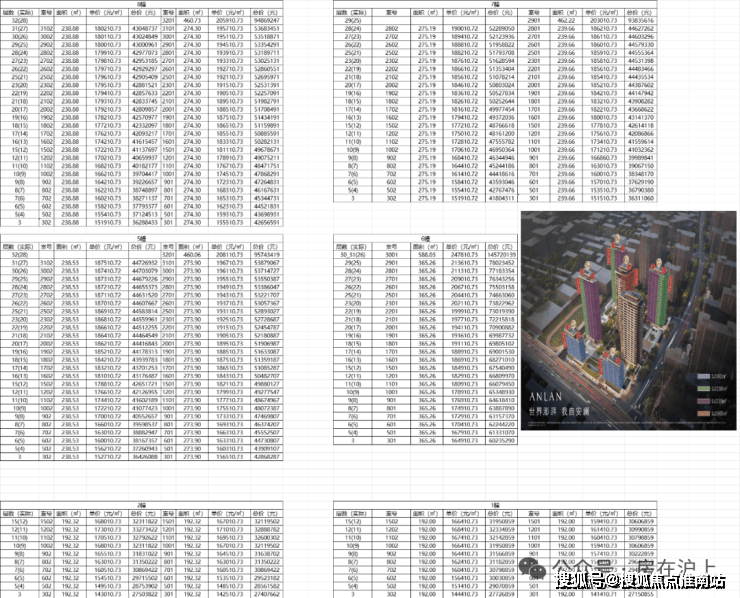 「安澜上海 一房一价表」