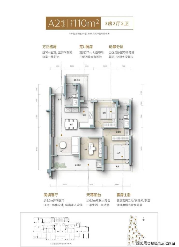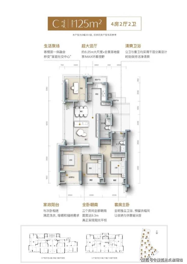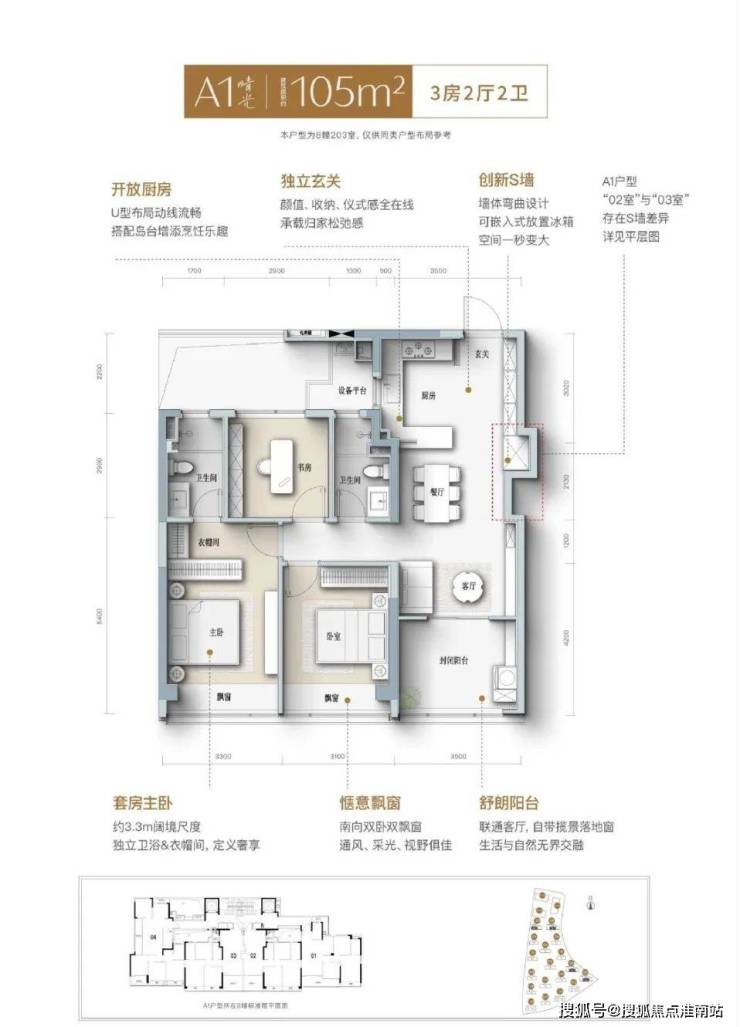 105㎡三房两卫:总价约325-370万,南向面宽超10米,适合刚需家庭