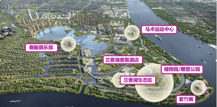 地块所在的紫竹区域占据浦江上游第一湾独特地理位置,核心区域有闵行第一大湖兰香湖,水域面积广阔,岸线绵延,湖光潋滟。