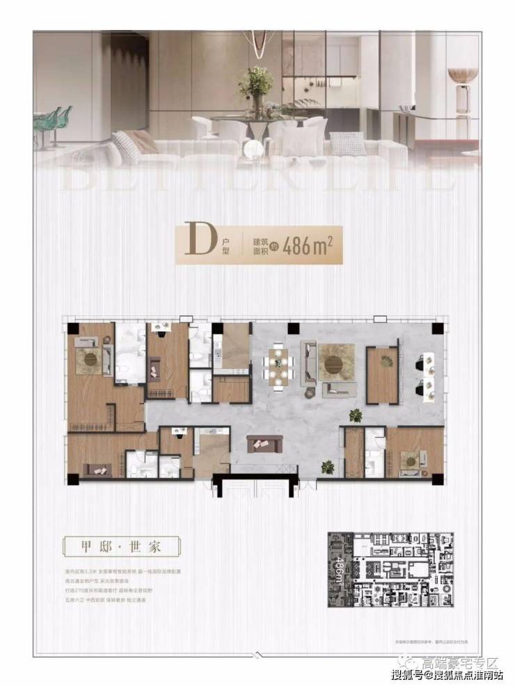 主力户型为建面约241–486㎡的奢阔行政公馆,涵盖三至五房;