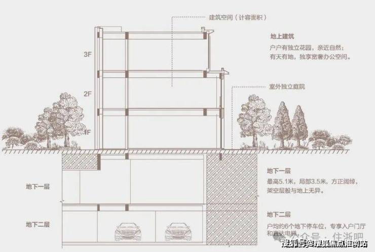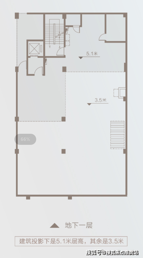 地下社交:层高约5.1m、局部约3.5m,可作企业康养乐活空间