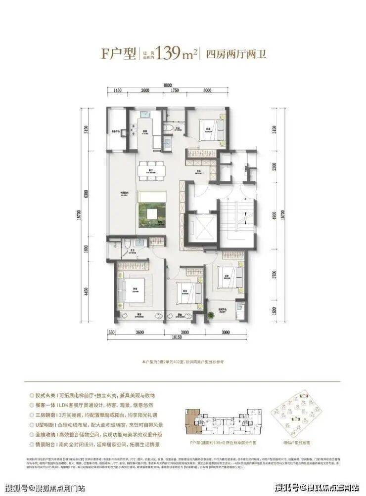 如果预算再多一点,家里人多一点,建面约128㎡边套四房户型,同样也是边厅户型,空间更大,功能性更强,总价相比市面上的139㎡还是亲民了许多。此外,作为板块首个封闭式阳台的住宅项目,还是之江首个全屋五重收纳功能柜子全赠送的项目。