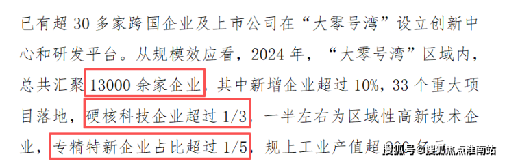 数据最有说服力:你看看人才数量,且截止2024年,大零号湾已汇聚13000多家企业,关键的是,新增企业中1/3都是科技企业!