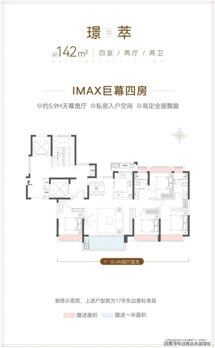 倘若拥有更高的预算,那么这套建面约142㎡4房2厅2卫非常适合改善家庭的需求。其南向面宽达到了15.4米,比肩豪宅平层产品的气场和尺度感。
