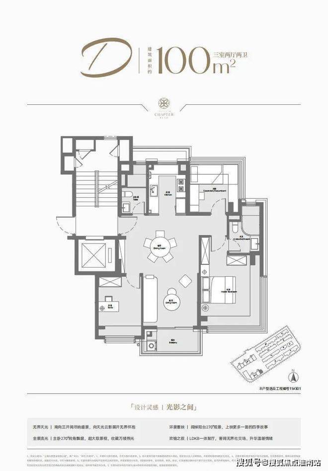 主卧+北次卧配置270°飘窗,3个朝向可享受L型的转角视野。