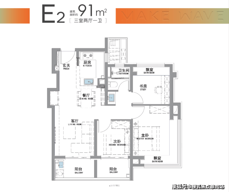 “南向双阳台+南北双飘窗”,构筑真3房户型!