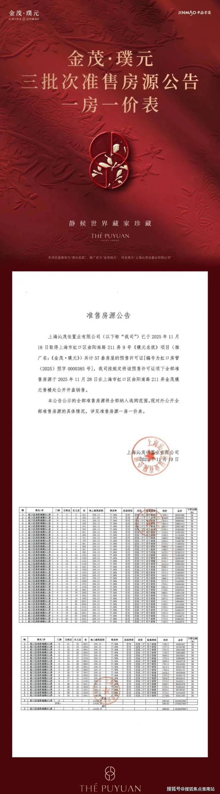 金茂璞元一房一价表: