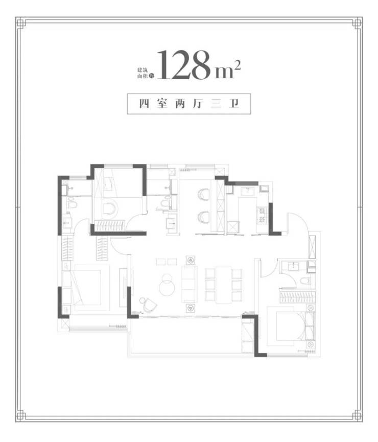 洋房户型-臻雅建筑面积约128㎡ 4室2厅3卫