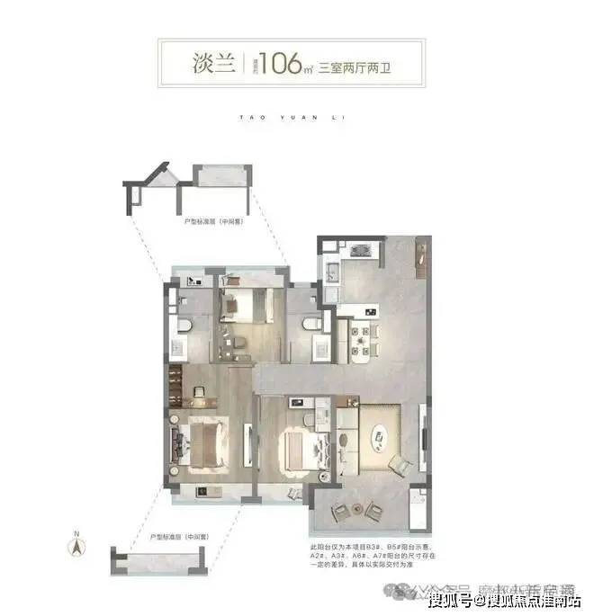 106㎡3房则做到“真三房”,不是市面的“2+1”,而是每个房间都能做卧室;约3.45米客厅面宽、开放式可视厨房、南向大阳台,让家庭公共活动空间更显开阔。