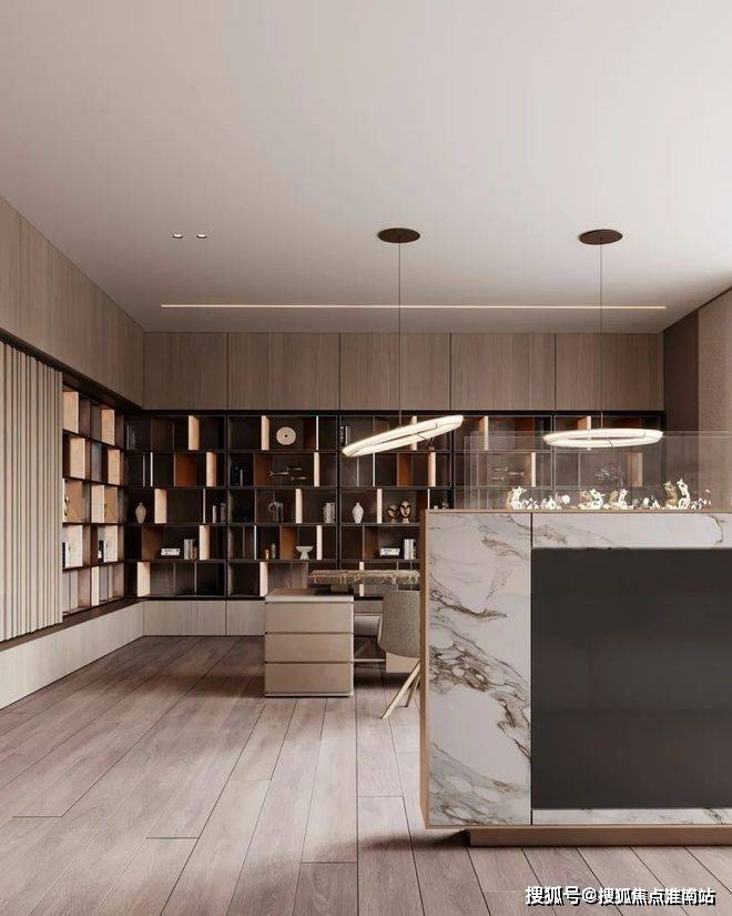 上海浦东绿宝园·翡梵售楼处电话:400-8818-994绿宝园·翡梵官方电话:400-8818-994浴室的细节设计让人感受到线条的美,书房的收纳柜满足了使用者的收纳喜好。同时,吊灯和灯子的相互搭配也给这个空间带来了不一样的对称美。