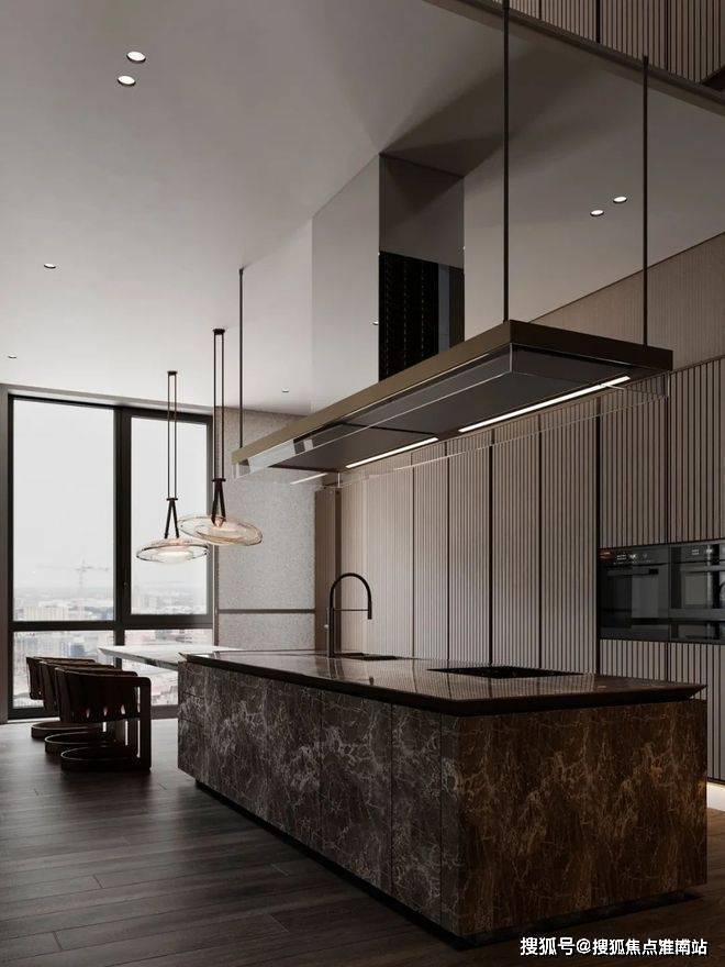 上海浦东绿宝园·翡梵售楼处电话:400-8818-994绿宝园·翡梵官方电话:400-8818-994整个餐厅的墙壁和天花板全部使用可视镜作为装饰,把客厅和餐厅的风景全部融合在一起,餐厅的餐桌和大理石岛台完全烘托出现代的氛围感。