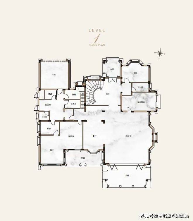 地上两层布局:无地下室设计,层高4.2-4.8米,南向面宽达30米,配备7房4厅6卫及超大私家庭院58。