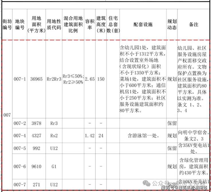 根据设计方案显示,007-01地块(大)拟建47栋3F多层住宅(包含部分底层商业)、1处幼儿园以及若干社区配套;将打造石库门风貌别墅产品。 007-01地块(小)拟建1栋43F超高层住宅以及若干社区配套,超高层无中小套户型要求,全装修比例为100%。 规划范围内各类保护保留历史建筑的建筑面积不少于5.28万平方米,其中优秀历史建筑的建筑面积约0.11万平方米,文物保护点约2.49万平方米。