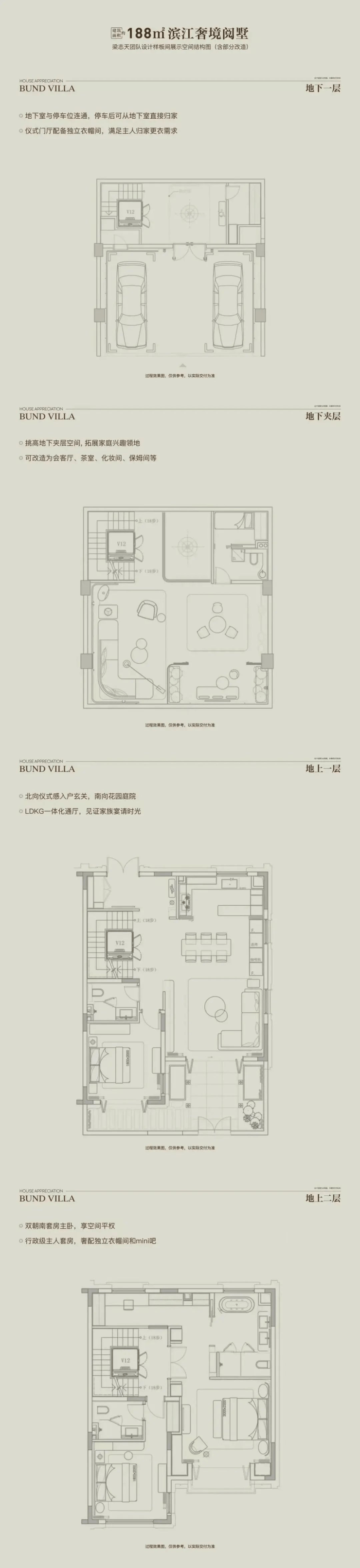 以“全两层+会所”的形态革新、花园露台地下室的全维空间、大面宽短进深的奢适格局,重构别墅生活场景。