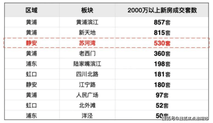 第一:去年约2000万以上的新房成交套数,苏河湾是全市第三,仅次于黄浦滨江和新天地。