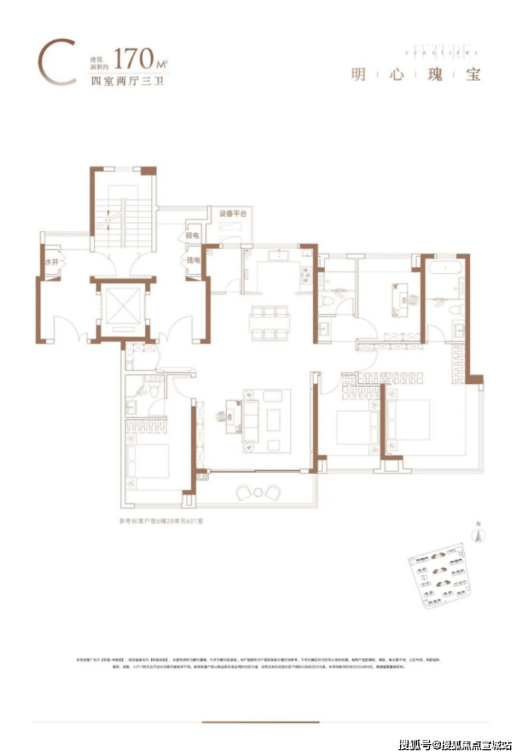 安高申陇院建面约170㎡四房两厅三卫,以突破性尺度成就区域改善之作,四房空间张弛有度,这不仅在于其房间数量,更在于对每一寸空间的规划所带来的整体舒适性与尊崇感。约79-80%的高得房率,让住宅的实际使用空间显著扩容。