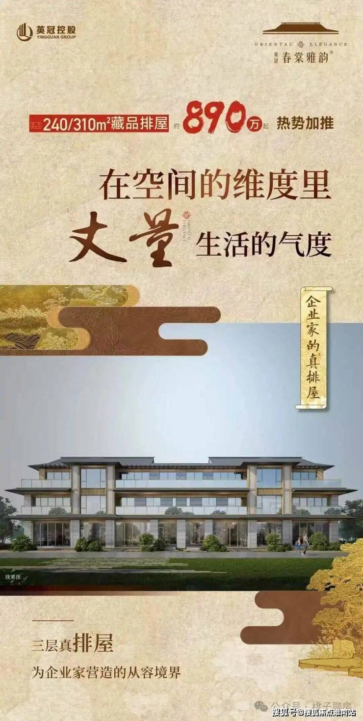春棠雅韵府是杭州临平区低密改善型楼盘,主打宋韵美学设计,包含洋房与排屋产品,当前主推建面约166-310㎡户型,总价459万起。